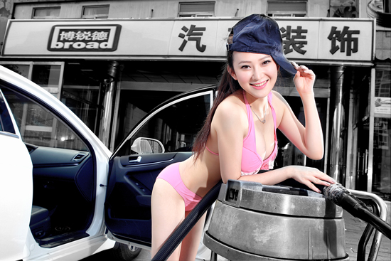 热辣性感的比基尼美女洗车房里上演“湿身秀”